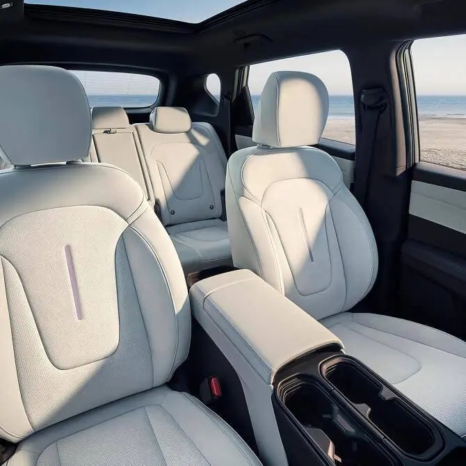 داخل کابین دارای صفحه نمایش 27 اینچی یکپارچه استفاده شده که شامل صفحه کنترل مرکزی بزرگ و صفحه سرگرمی سرنشین جلو می ‌شود، با رزولوشن 4K و روشنایی 1000 cd/m². دکمه‌ های فیزیکی سنتی از کنسول مرکزی حذف شده‌ اند و نمایشگر هداپ به صورت استاندارد نصب شده است.