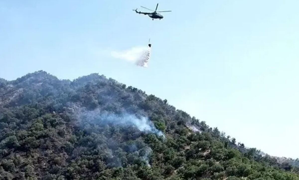 عملیات مهار آتش با بالگرد/ حریق در جنگلهای الیت مرزنآباد + فیلم