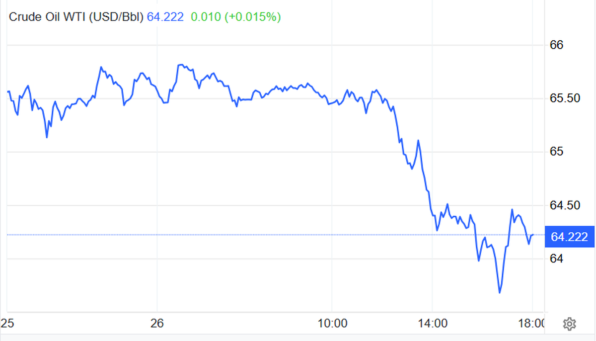 قیمت نفت خام وستتگزاس اینترمدیت با افتی بیش از ۱.۵ درصد به حدود ۶۴.۳ دلار در هر بشکه رسید؛ همزمان سرمایهگذاران تحولات مذاکرات هستهای آمریکا و ایران، تحریمهای جدید واشنگتن و افزایش صادرات تولیدکنندگان بزرگ خاورمیانه را ارزیابی میکنند.