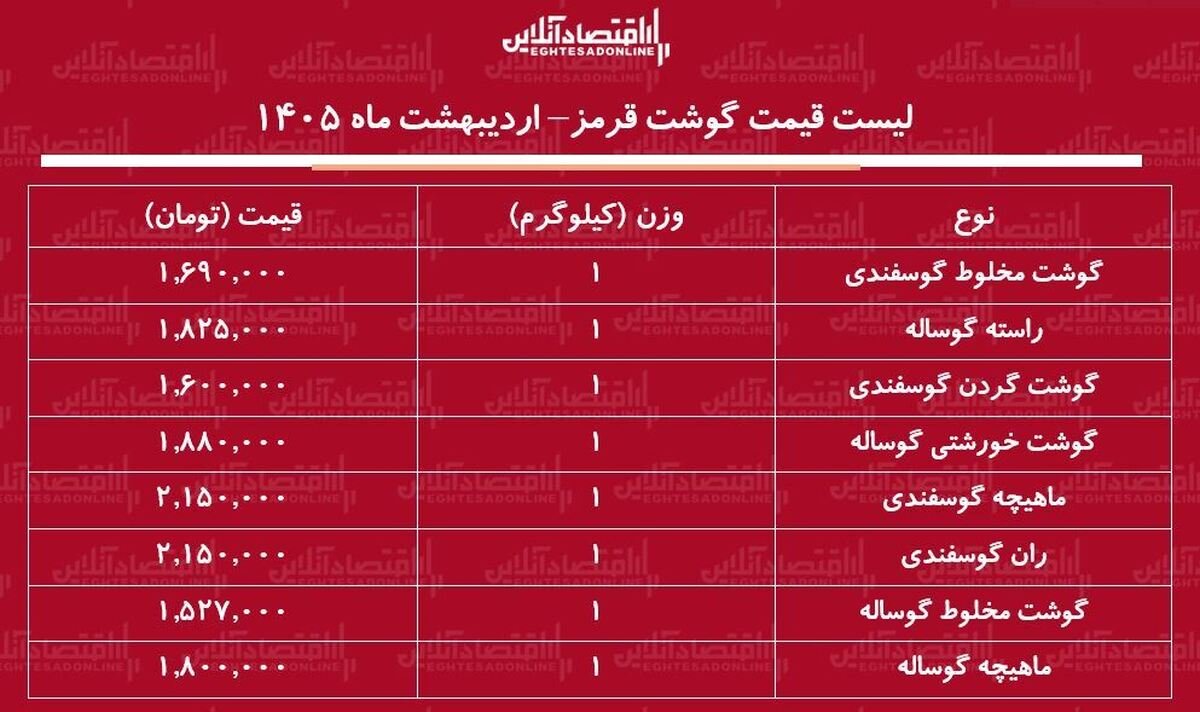 لیست قیمت گوشت قرمز امروز ۶ اردیبهشت ۱۴۰۵ / گوشت خورشتی کیلویی چند شد؟ + جدول
