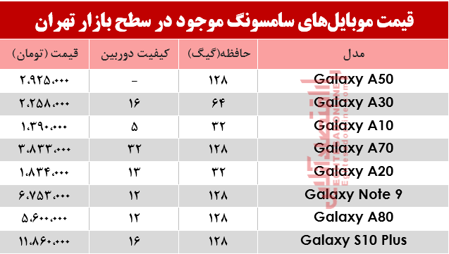 اقتصاد آنلاین – سمانه باقری: آنچه در زیر میآید قیمت انواع موبایلهای سامسونگ وجود در سطح بازار تهران است: