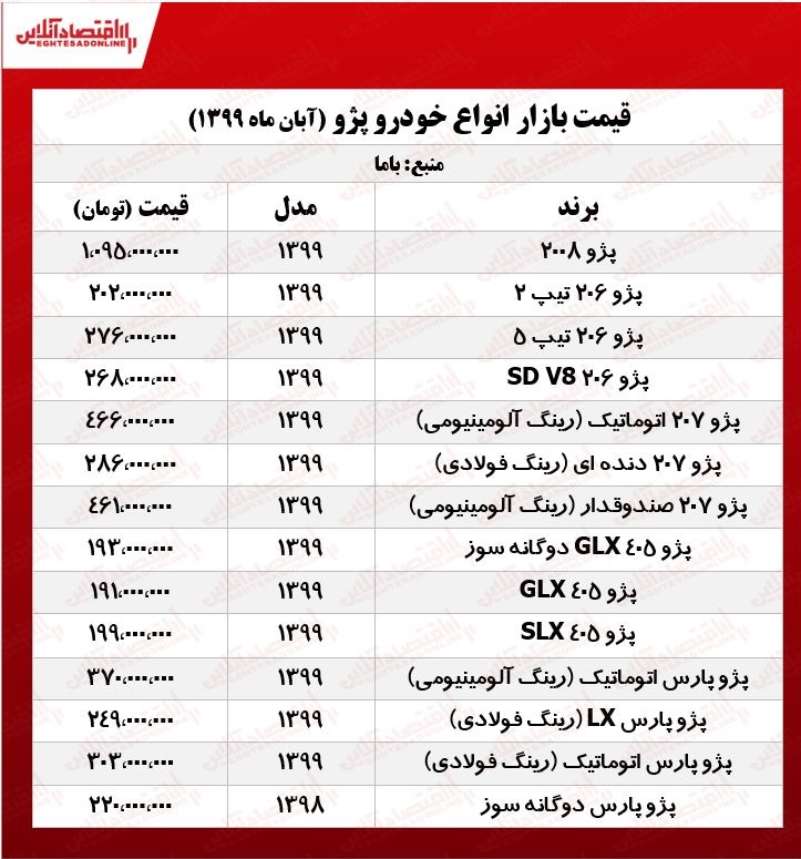 پژو ۲۰۶تیپ ۵ چند؟ +جدول