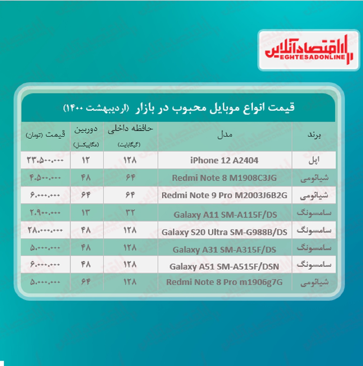 قیمت محبوب ترین گوشی های بازار / ۲۹اردیبهشت