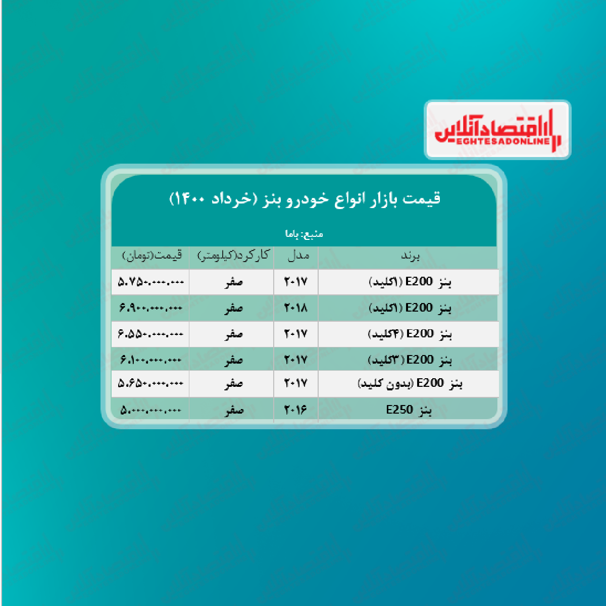 اقتصاد آنلاین - پیام مصطفایی: در جدول زیر قیمت انواع بنز در بازار آزاد را مشاهده می‌کنید.