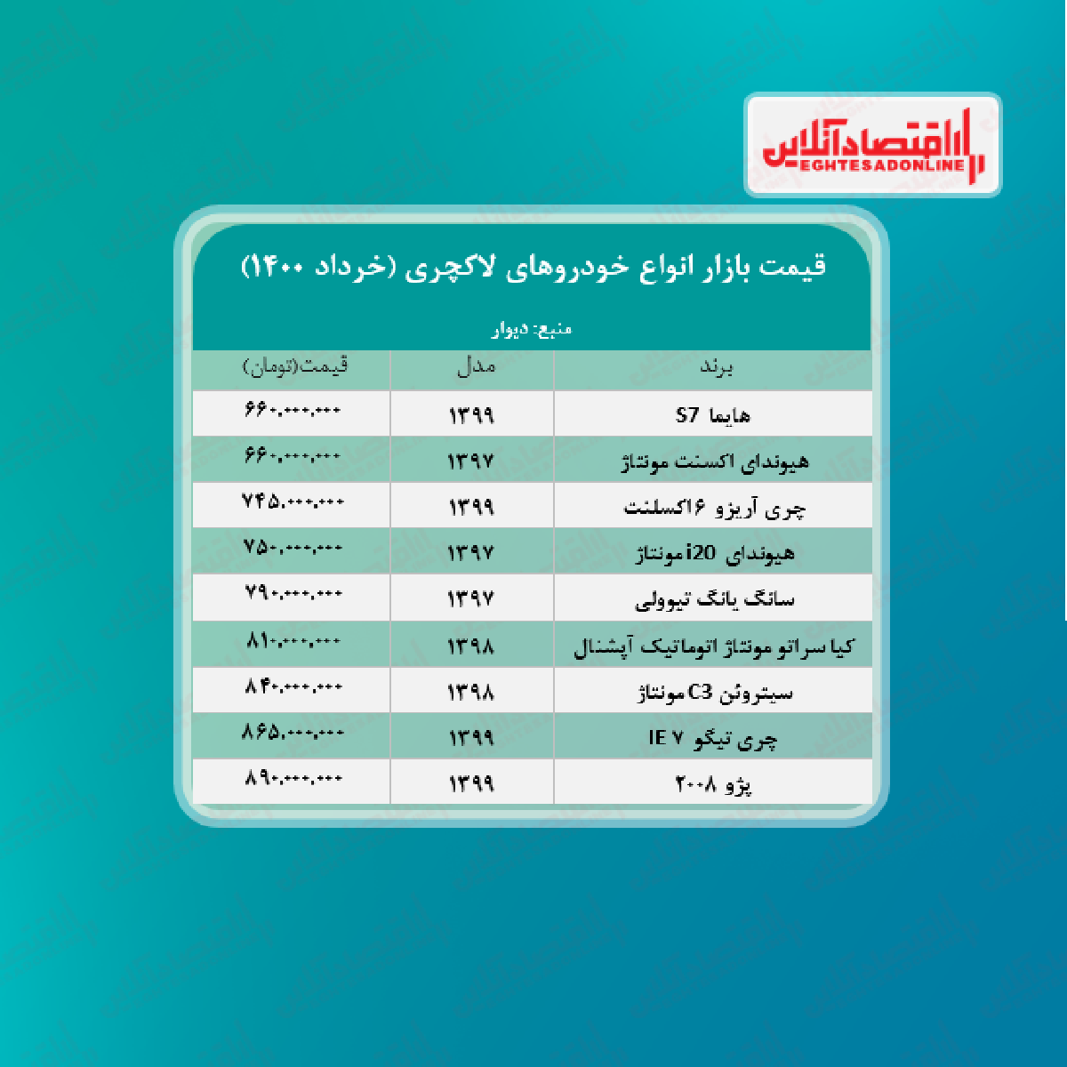 اقتصاد آنلاین - پیام مصطفایی: در جدول زیر قیمت روز خودروهای لاکچری در بازار آزاد را مشاهده می‌کنید.