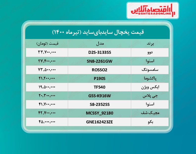 اقتصاد آنلاین - سولماز محمدی: آنچه در زیر میآید قیمت یخچال فریزر سایدبای ساید موجود در سطح بازار است؛