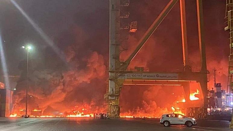 وضعیت هولناک بندر دبی بعد از انفجار + فیلم