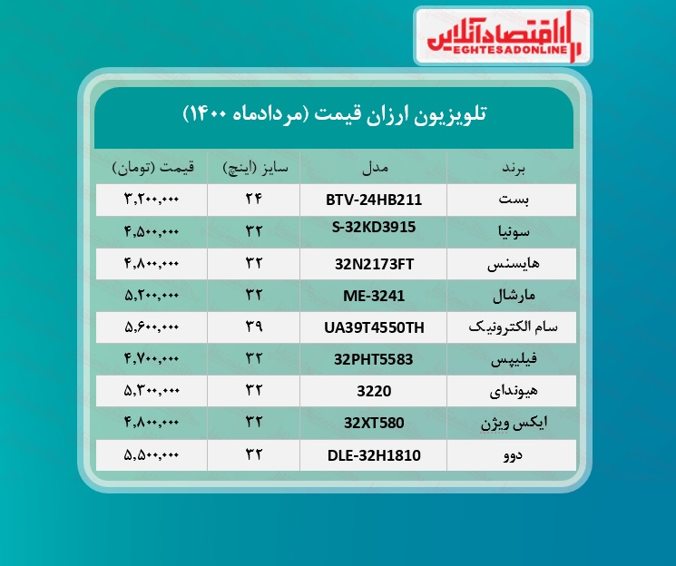 ارزان ترین تلویزیون های بازار چند؟ /۲مردادماه