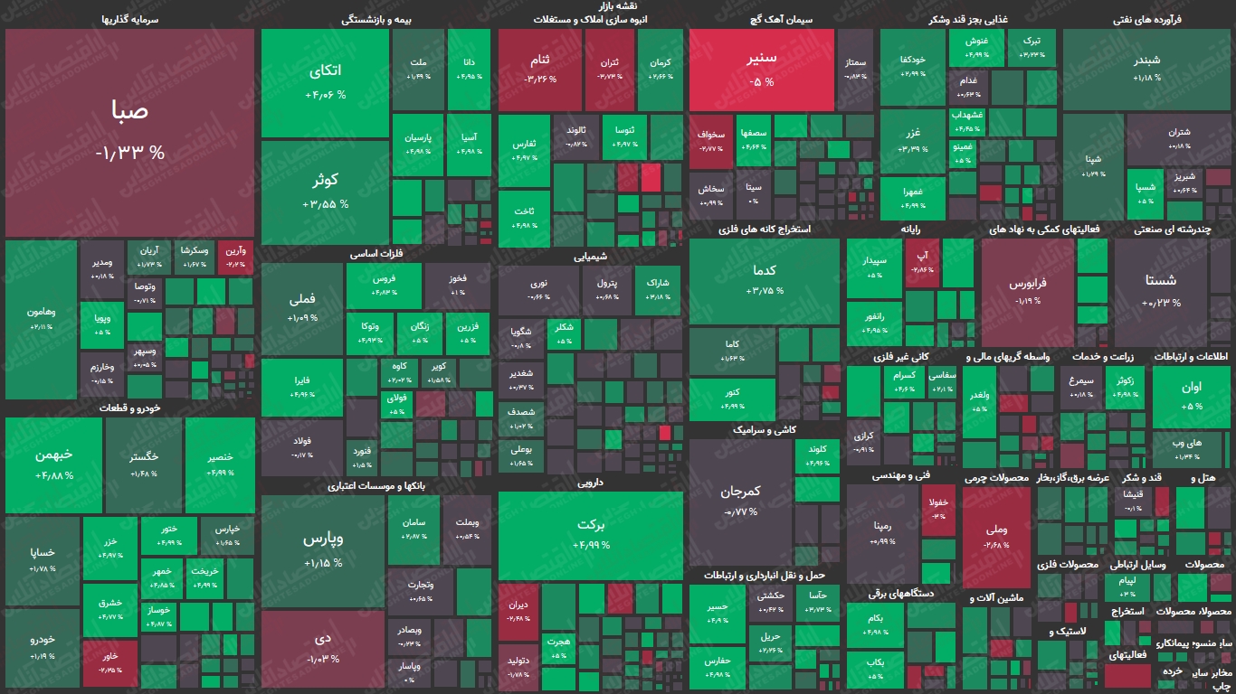 نقشه بورس امروز بر اساس ارزش معاملات (۱۵شهریور) / شاخص کل در ارتفاع یک میلیون و ۵۴۳هزار واحد قرار گرفت