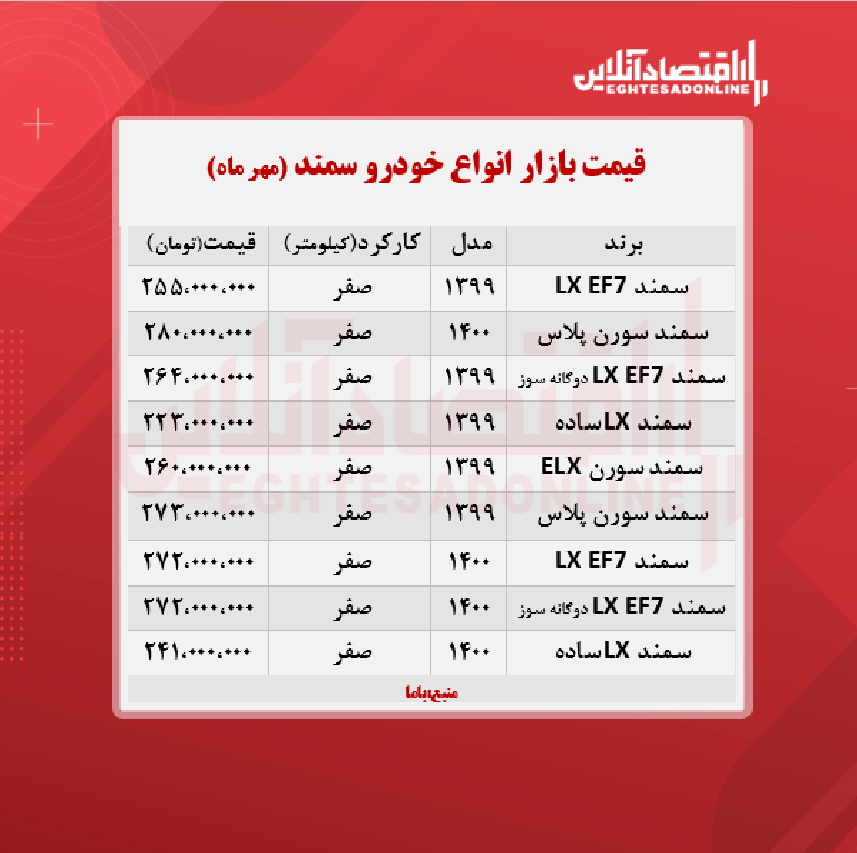 قیمت سمند ۱۴۰۰/۷/۳