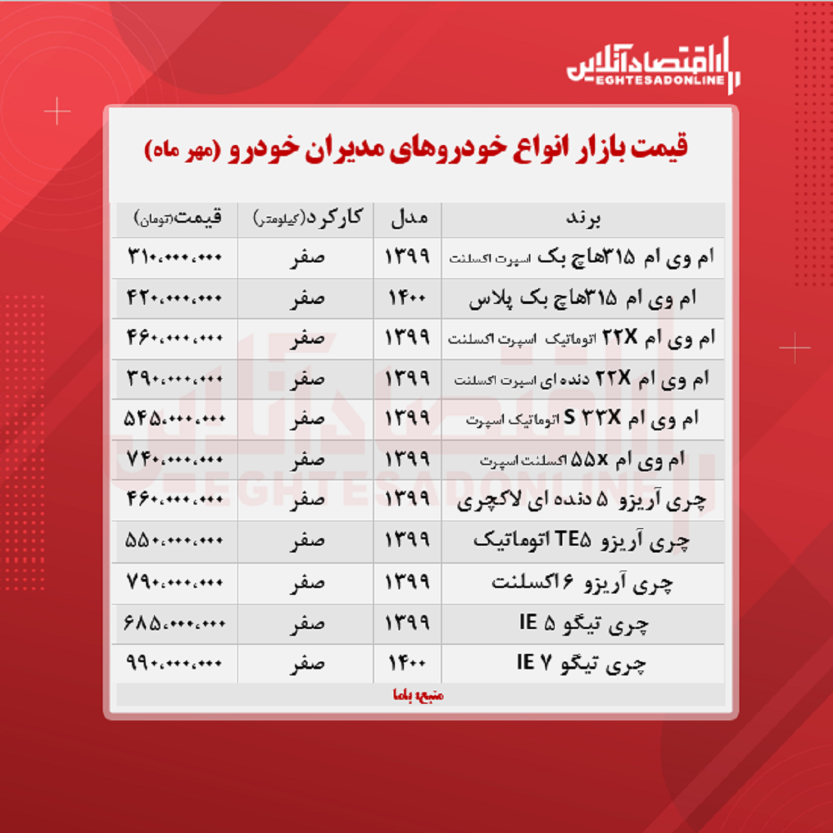 اقتصاد آنلاین - پیام مصطفایی: در جدول زیر قیمت روز انواع محصولات مدیران خودرو در بازار آزاد را مشاهده میکنید.