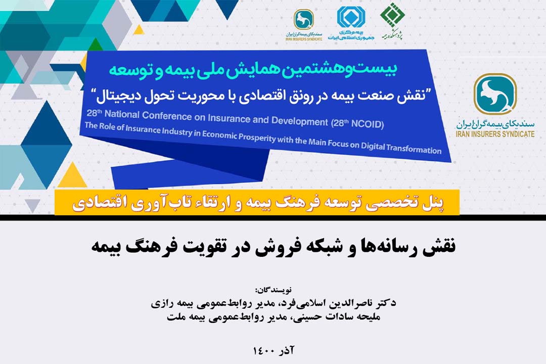 در پنل تخصصی «توسعه فرهنگ بیمه و ارتقاء تابآوری اقتصادی» بیست و هشتمین همایش بیمه و توسعه، «ملیحه سادات حسینی» مدیر روابط عمومی شرکت بیمه ملت و «دکتر ناصرالدین اسلامی فرد» مدیر روابط عمومی شرکت بیمه رازی، مقالهای با عنوان «نقش رسانهها و شبکه فروش در تقویت فرهنگ بیمه» ارائه کردند.