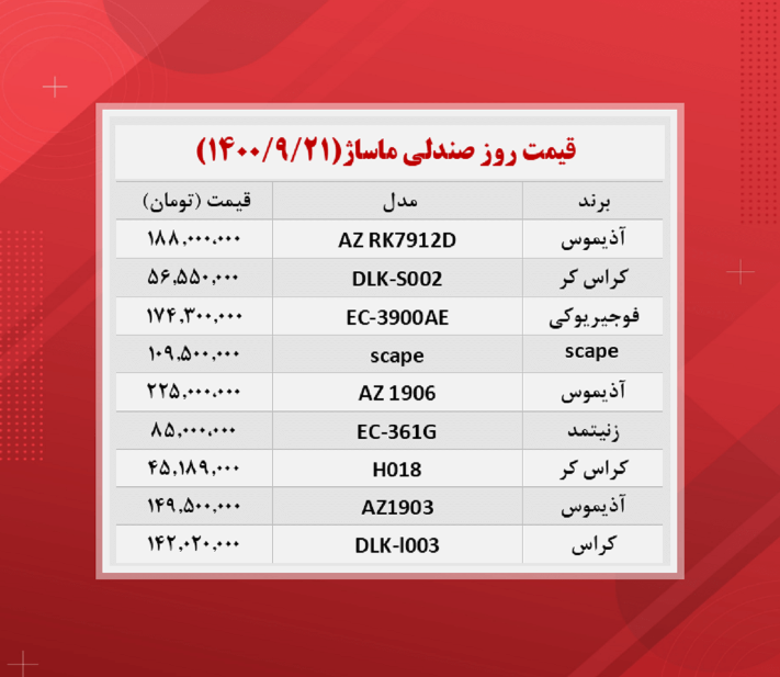 قیمت صندلی ماساژ (۱۴۰۰/۹/۲۱)