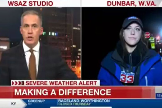 تصویری عجیب از برخورد خودرو با خبرنگاری در ایالت ویرجینیای غربی در برنامه زنده، که پس از برخورد بلندشد و گزارشش را به اتمام کرد.