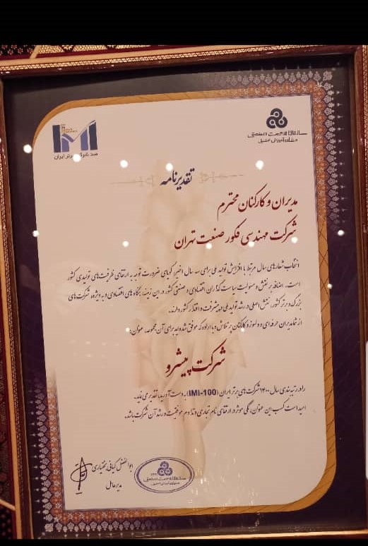 در رتبه بندی سال ۱۴۰۰ شرکت های برتر ایران IMI۱۰۰ شرکت فکور صنعت تهران موفق به کسب رتبه ۹۳ در رتبه بندی صد شرکت برتر ایران (IMI100) شد.