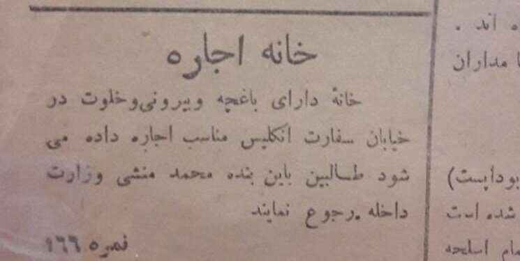 آگهی اجاره خانه ویلایی در دوره قاجار + عکس