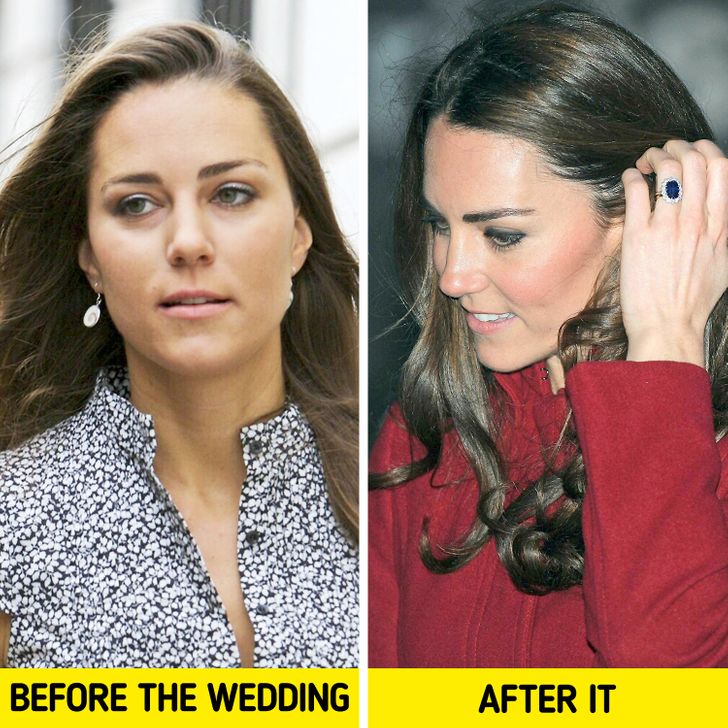 کیت میدلتون به طرز ماهرانه‌ای انحنای ابروهایش را بلند میکند ،که این کار باعث می‌شود چشم‌ها درشت تر به نظر برسند. با مقایسه عکس های گذشته او میتوانید این ترفند را بهتر ببینید.