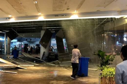 لحظه ریزش سقف یک پاساژ به دلیل باراش باران + فیلم