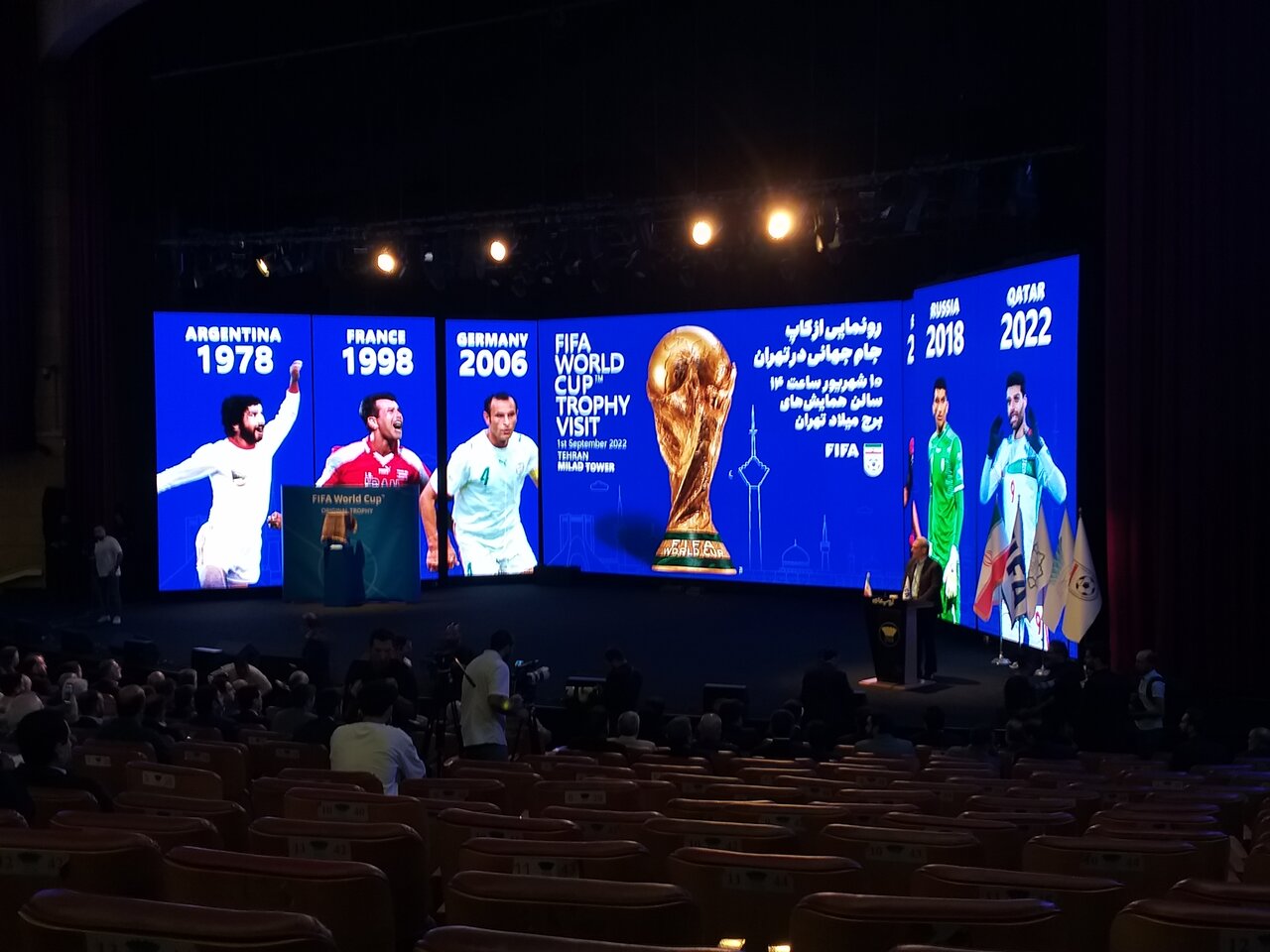 مراسم رونمایی از کاپ جام جهانی ۲۰۲۲ قطر دقایقی پیش در برج میلاد آغاز شده است.