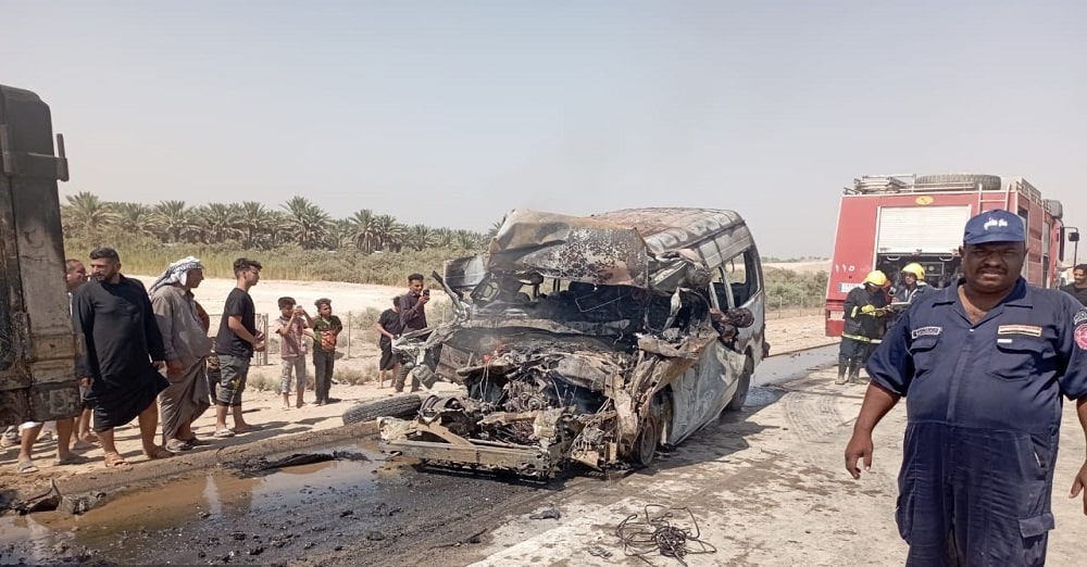 تصادف میان سه دستگاه وسیله نقلیه که زائران اربعین نیز از مسافران آنها بودند، تاکنون منجر به مرگ ۱۱ تن و مصدومیت ۳۱ تن دیگر شده است. این حادثه در شهر شوملی در استان بابل عراق رخ داده و برابر اطلاعات اولیه زائران ایرانی نیز در میان حادثهدیدگان وجود دارند.
