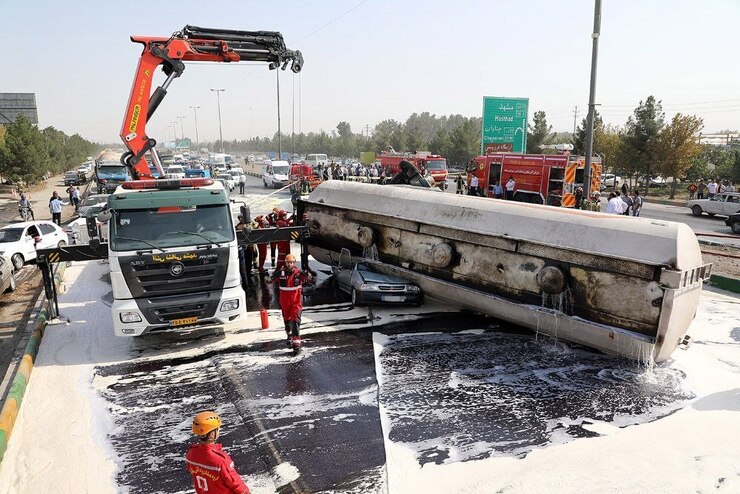 لحظه تصادف دلخراش پراید با تانکر حمل سوخت / پراید له شد! + فیلم