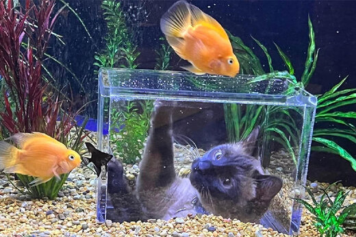 ویدیویی جالب از محبت و نوازش یک گربه و ماهی را که سوژه کاربران فضای مجازی شده است، ببینید.