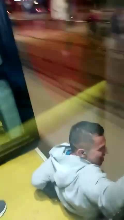 ویدیویی تکان دهنده از حرکت خطرناک یک جوان که ببا نشستن جلوی درب اتوبوس با جان خود بازی کرد.