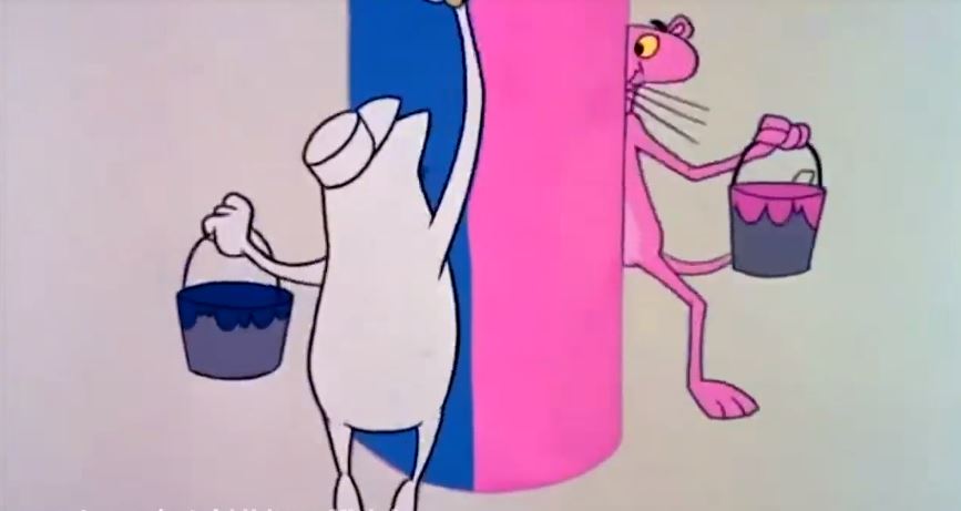 پلنگ صورتی با شخصیت دیگری بر سر رنگ آبی یا صورتی مبارزه می کند و...