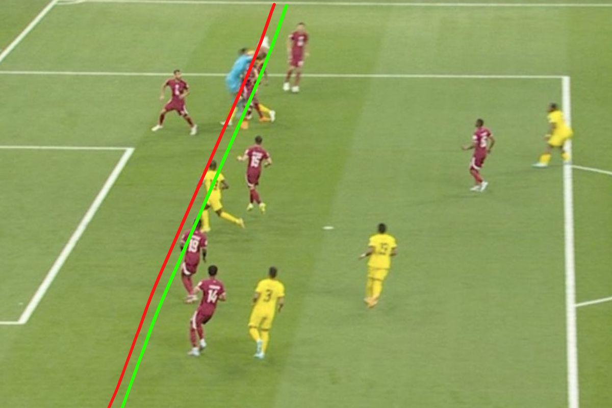 به این ترتیب صحنهای که در تصویر آمده است، آفساید نیست و بازی ادامه دارد. این در حالی است که در قوانین کنونی، این تصویر آفساید است.